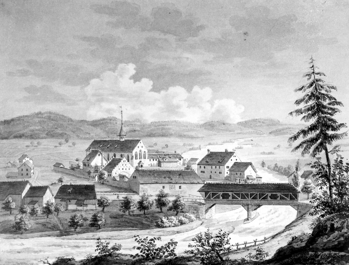 Very little remains of what used to be the large Dominican Convent of Töss, where a good number of our Huber families found work and lodging during the late Middle Ages. Now the convent has been overwhelmed by the much larger Rieter cotton factory.