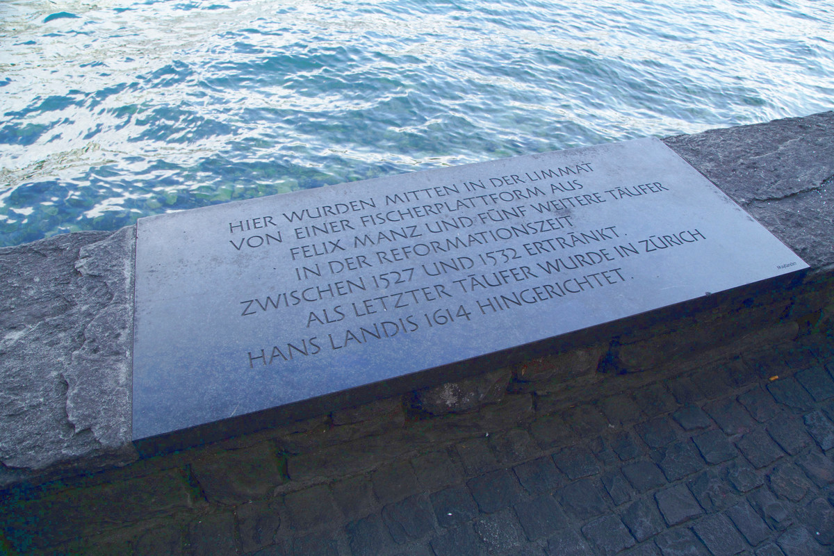 Site and plaque of Felix Manz’s martyrdom in 1527.