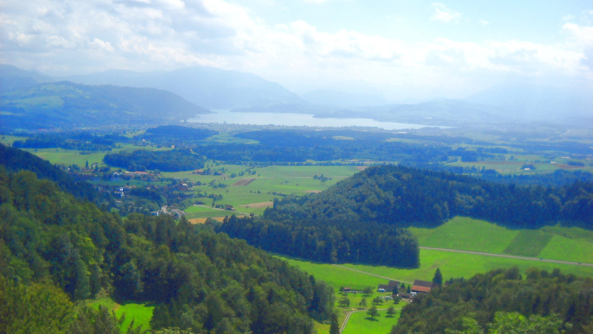 Looking south from the Albis across the edge of Zürich into the Catholic cantons of Zug and Schwyz.