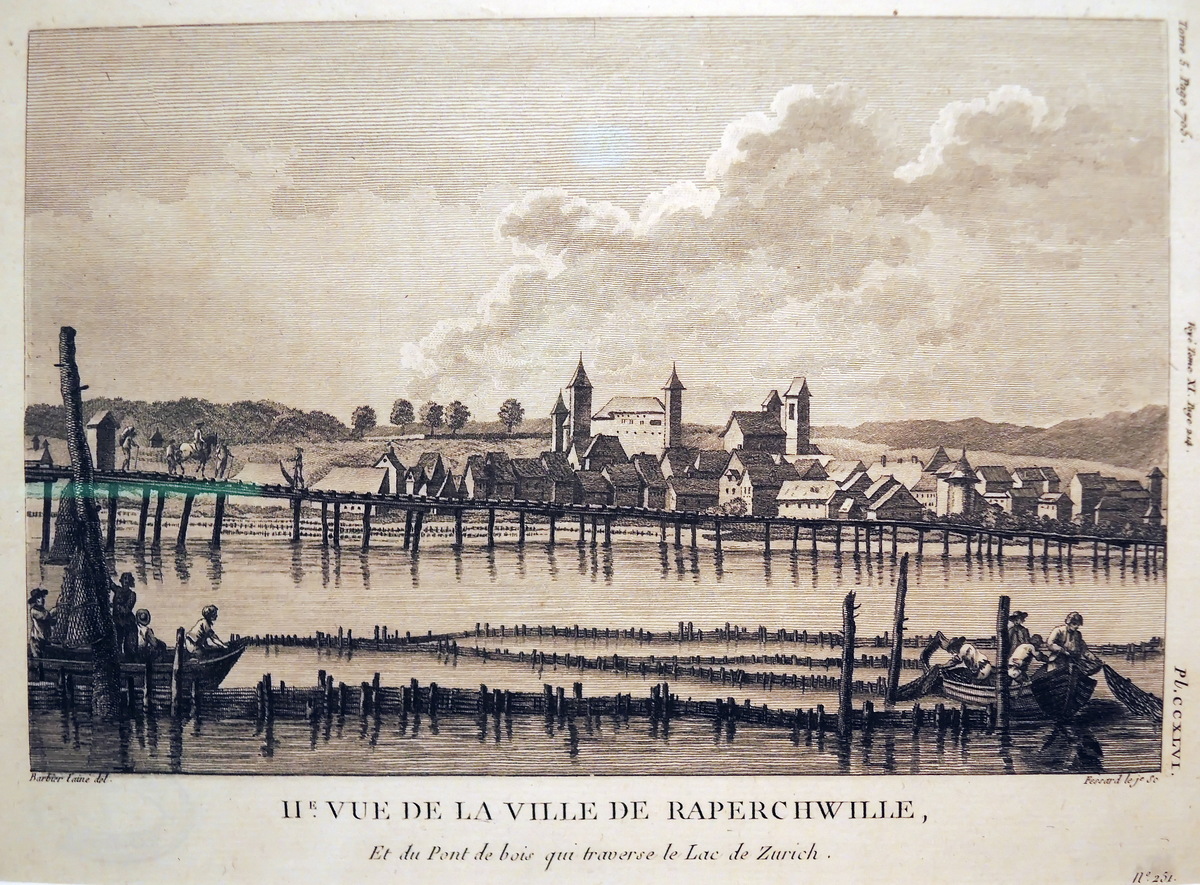 Many thousands of Pilgrims on the long way from Germany to the shrine of St. James in Spain (Santiago Matamoros) tramped through Zürich during the Middle Ages. A significant shortcut allowed them to walk on a boaardwalk across Lake Zürich to the community of Einsiedeln, and from there through Freiburg to France.